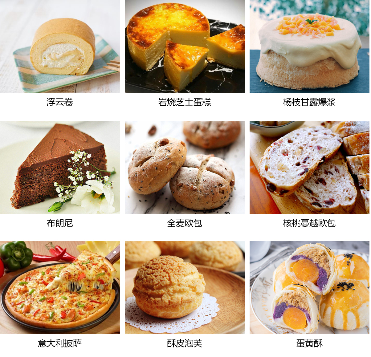 本專業(yè)主要學(xué)習(xí)浮云卷、巖燒芝士蛋糕、布朗尼、全麥歐包、酥皮泡芙、