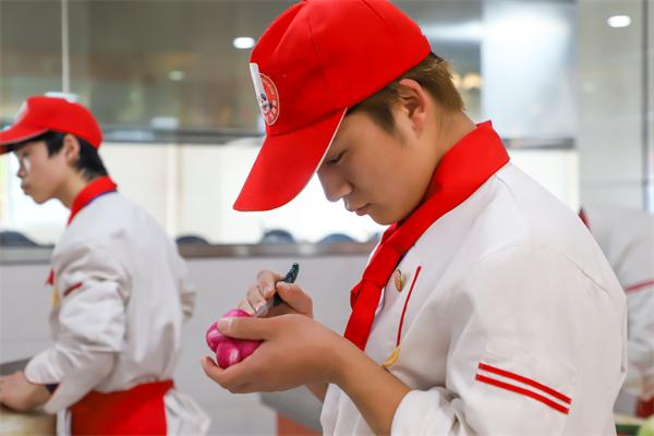 你畫一道風景果醬畫,我畫一道寫意果醬畫...盤子與指尖的溫度仿佛融在一起,每一抹顏色都是他對藝術追求的展現(xiàn)。果醬筆在我校烹飪學子的一雙雙巧手的施力下,構造著各式美麗的畫面,鮮艷的果醬猶如被賦予生命般在碟盤上綻放。