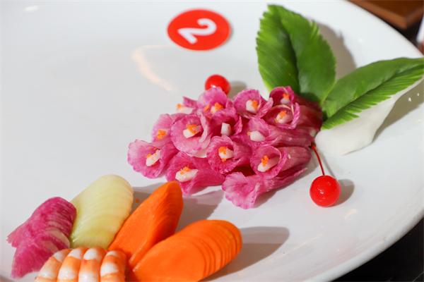 比賽開始,學員們凝眉聚神,胸有成竹。他們的手,有毫厘千鈞之力;他們的眼,有秋毫不放之工。刀刃在各種食材間,時而輕滑,時而勾勒,一片片食材在如玉如脂的盤中落下,形成一幅渾然天成的畫卷。