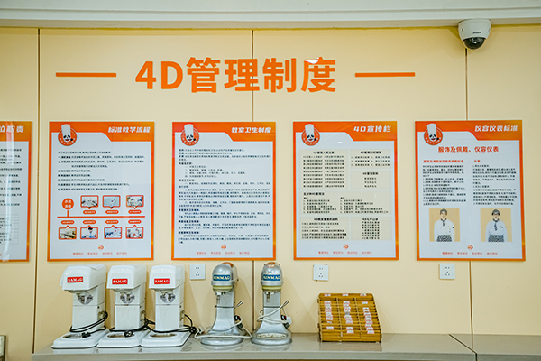 采用4D管理教學(xué)體系,即“整理到位、責(zé)任到位、培訓(xùn)到位、執(zhí)行到位”,以企業(yè)標(biāo)準(zhǔn)要求學(xué)生提前掌握后廚規(guī)范,打造4D情景模擬教室,讓學(xué)生提前了解熟悉畢業(yè)后的工作環(huán)境。
