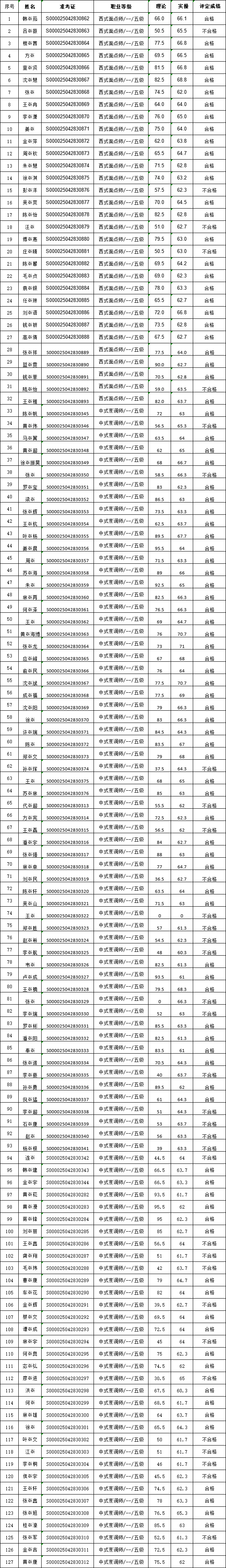2025年5月24日杭州新東方烹飪學校職業(yè)技能等級認定結(jié)果公示