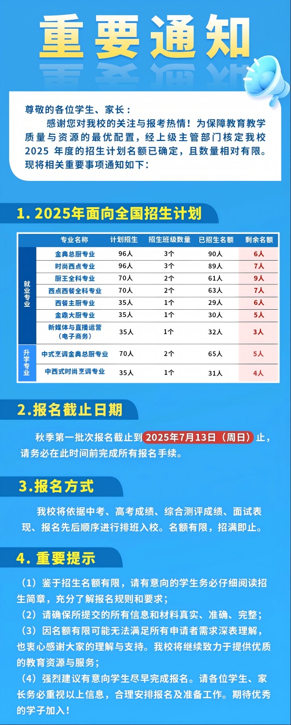 速搶!杭州新東方烹飪學(xué)校2025年秋季第一批次報名即將截止