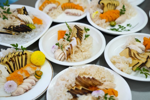 林總監(jiān)的現(xiàn)場操作教學更是將理論轉化為實踐,他一邊操作一邊講解,學子們在他的指導下,嘗試打造兼具味覺與視覺沖擊力的刺身姿造作品。